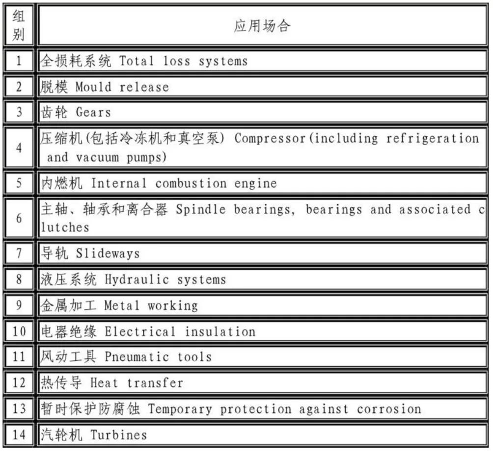 國際標準化組織(ISO)制定了ISO6743/0潤滑劑、工業(yè)潤滑油及有關產(chǎn)品(L類)分類標準。中國等效采用ISO6743/0標準。制定了國家標準GB7631。潤滑劑和有關產(chǎn)品(L類)的分類。GB7631.1根據(jù)應用場合將潤滑劑和相應產(chǎn)品分為以下各組。GB7631.1潤滑劑和有關產(chǎn)品(L類)的分類第1部分。
