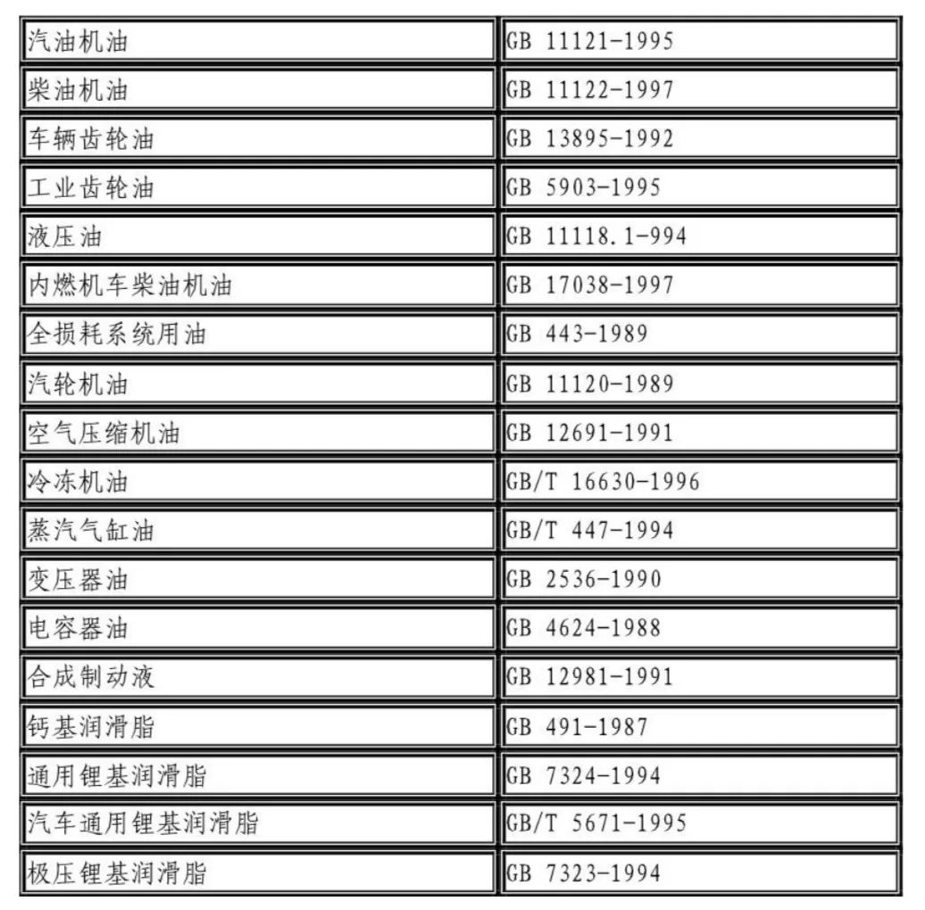 由于石化企業(yè)標準和石化行業(yè)標準較多,因此只能列出以下有關潤滑油脂的國家標準供參考: